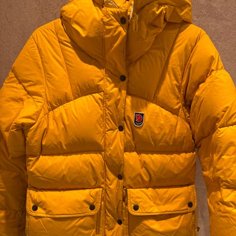 Fjällräven Expedition Down Lite jakke i størrelse M for damer. Jakken er blå og laget av dun, noe som gir god isolasjon og varme. Egnet for utendørs bruk i kaldt vær.