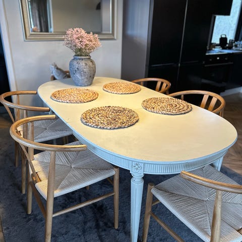 Gustaviansk spisestuebord med gulldetaljer i rosene ved bordben selges. Det har 1 ileggsplater. Og har noen få bruksmerker. Må hentes, pris kan diskuteres ved rask avgjørelse