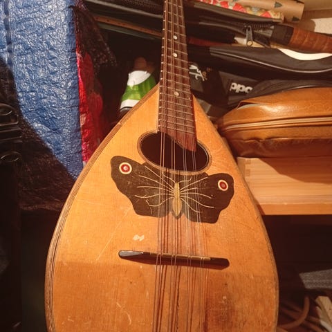 Akustisk gitar med trefinish. Ekte vintage. Jeg har justert strengehøyde ned, satt på helt nye strenger. Pusset og oljet halsen med sitronolje. Svært lettspilt nå, fin og god lyd.