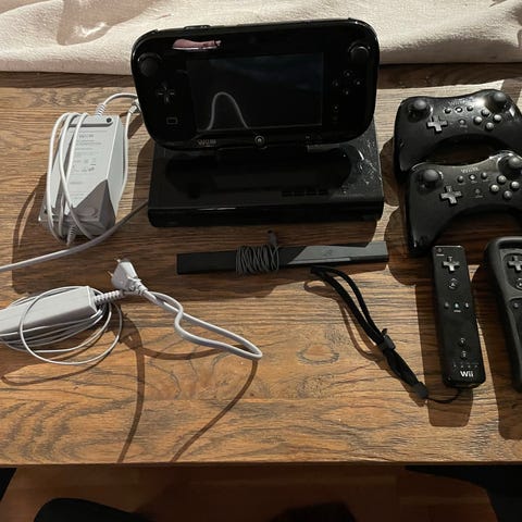 Selger en svart Nintendo Wii U i god stand med ekstrautstyr – perfekt for familie, venner eller en nostalgisk spillkveld! Følgende er inkludert: