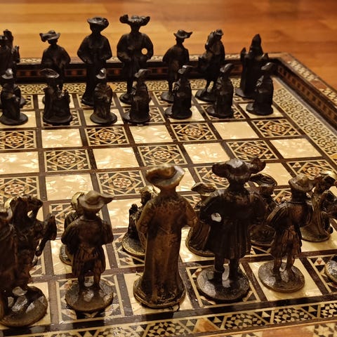 Antikk Sjakkbord i tre med utskåret mønster