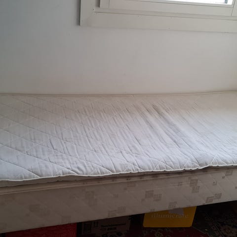 Daybed gis bort. Mørkevelur, noen fjærer er ødelagte under.