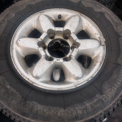 Komplett vintersett til Hiace. Eldre dekk fra Nokian, men tilnærmet ubrukte (2010). Overraskende myke i gummi. 8-9 mm mønsterdybde.