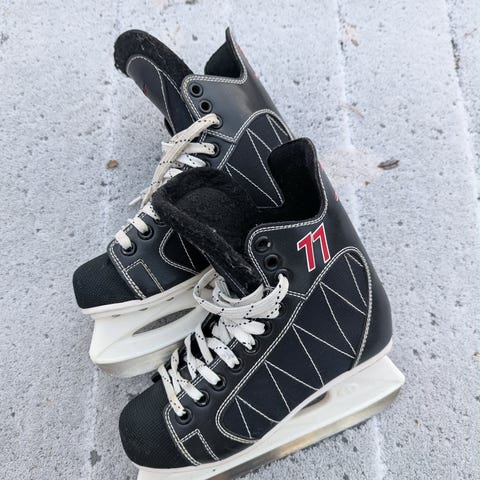 Baud V3000 ishockeyskøyter for barn i størrelse 35. Skøytene er brukt, men ingen feil. Noen synlige merker her og der. Trenger nok sliping, beskyttelse følger med.