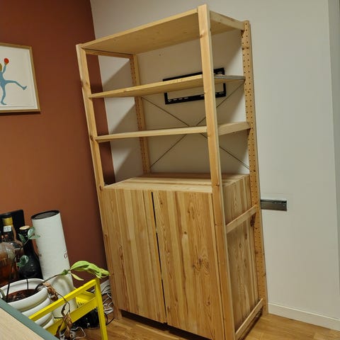 Følger med fester slik at den kan settes sammen med Ivar hyllesystem.