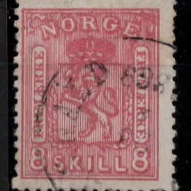 Norge frimerke med verdi 2 skilling i oransje farge. Stemplet med dato 11.8.99. Tradisjonelt poststempel på frimerket. Sendes som vanlig brev (billigst)