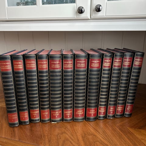 Samling av innbundne bøker og leksikon