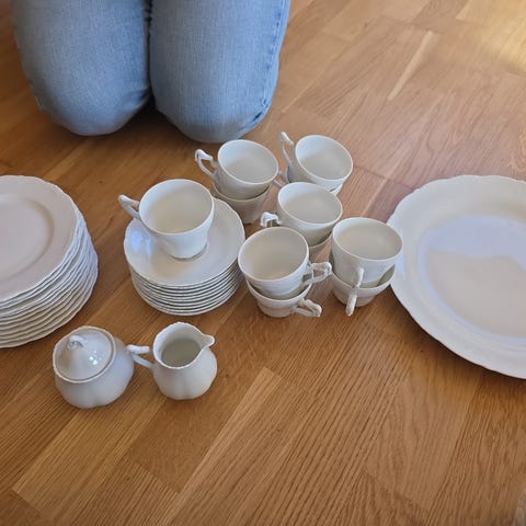 Består av 12 kopper, 5 tefat og 12 asjetter. Selges samlet eller enkeltvis