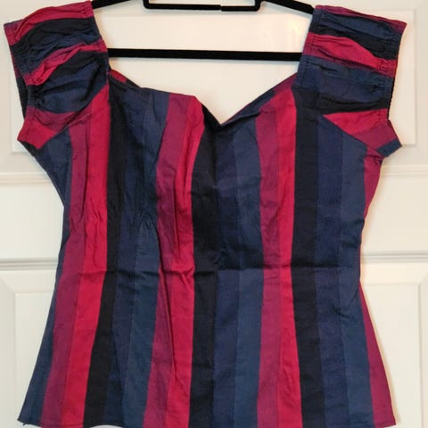 Collectif topp med knyting i nakken. Str UK16/XL. Strikk i ryggen så størrelsen er fleksibel og passer også større. Er ganske sikker på at den er ubrukt, men mangler lapp.