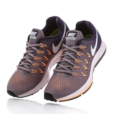 Nike Air løpesko i størrelse 41. Skoene har hvit og oransje farge med rosa detaljer.