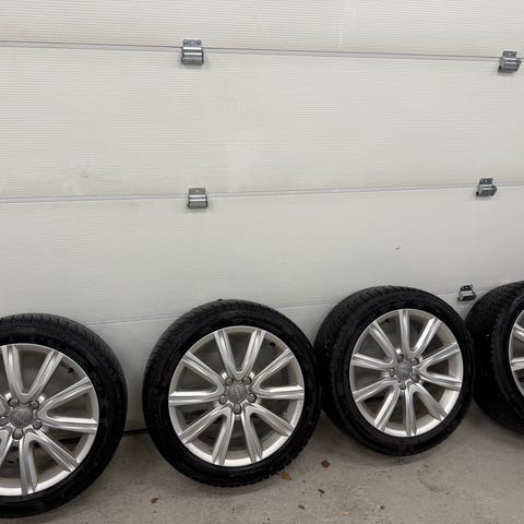 Selger nye sommerdekk med felg, disse satt på en Audi A7