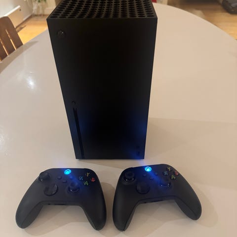 Xbox Series Xbox Series X konsoll med Elite trådløs kontroller, inkludert original emballasje, strømkabler og ett spill (Halo Infinite). Konsollen er svart og designet for hjemmeunderholdning med høy ytelse.