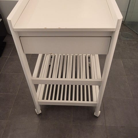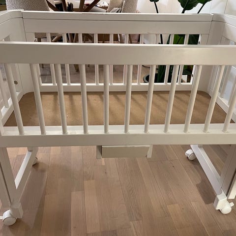 Av frykt for at barnet skulle trille over kanten så skrudde jeg på karmer på to av sidene. Disse kan skrus av om det ikke er ønskelig å ha dem på.