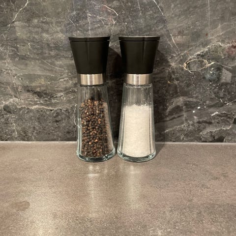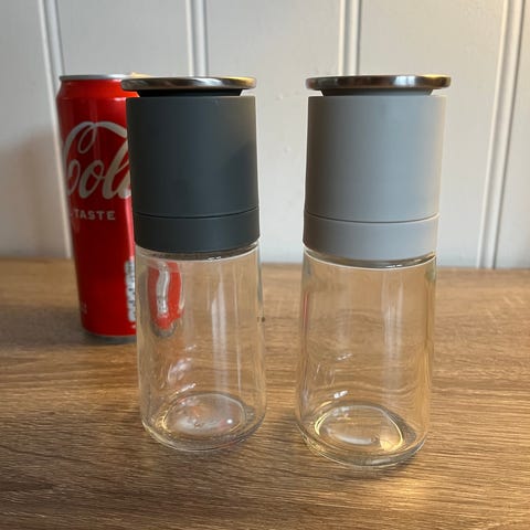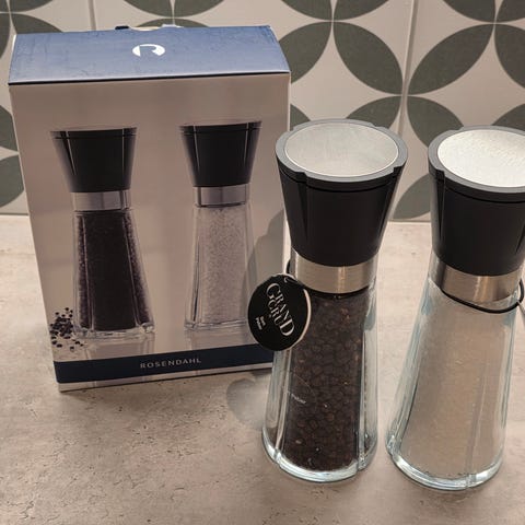 Rosendahl krydderkvern med glassbeholder og svart topp. Egnet for kverning av krydder og urter i kjøkkenet.