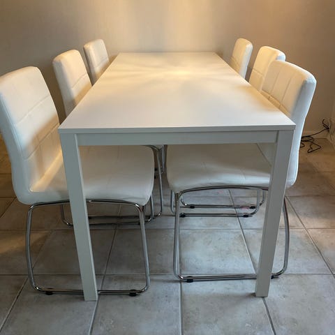 Pent brukt IKEA-bord. Noe bruksmerker må påregnes. Et lite hakk på den ene kanten av bordplaten, ellers i fin stand.