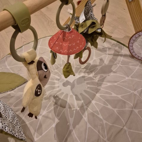 Babygym skip hos selges 5 med original leker og 1 libero sommerfugl. Speilet har riper og det er slitt i endene av stengene, se bilder.