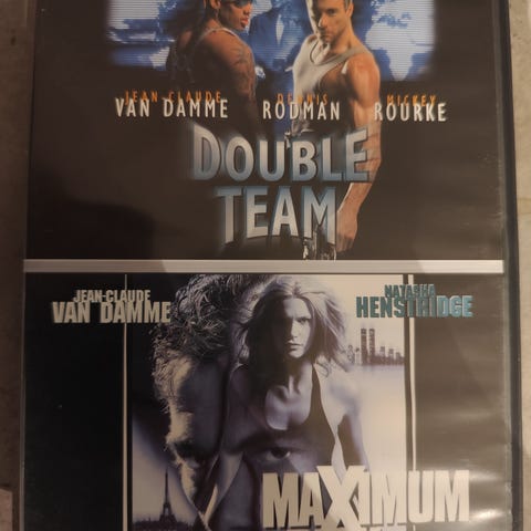 DVD-filmer med titlene Double Team og Maximum Risk. Double Team har en actiontema med Van Damme og Rodman. Maximum Risk er også en actionfilm med Van Damme. Begge DVD-er har aldersgrense 15 år og 18 år, og er i standard DVD-format.