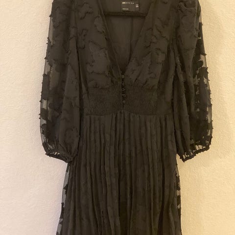 Shein festkjole i størrelse xs, svart farge, laget av polyester. Kjolen har lange ermer og en åpen rygg med knyting, egnet for kvinner.
