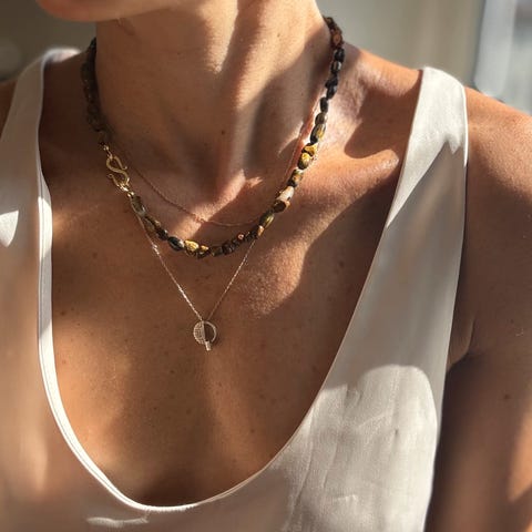 Håndlaget smykke med gråstripete steinanheng