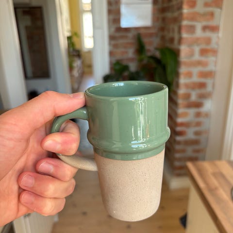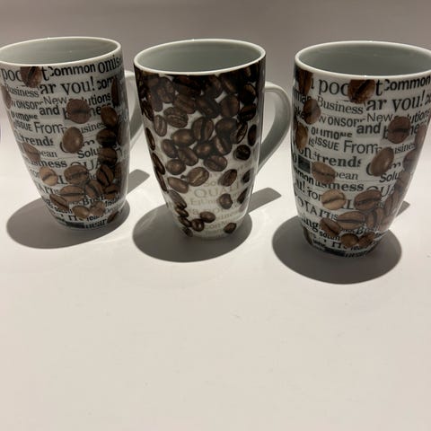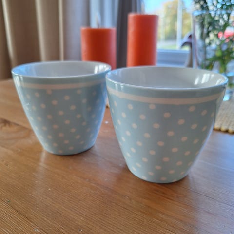 Sia kaffe/ tekopper med skål i glasert keramikk.