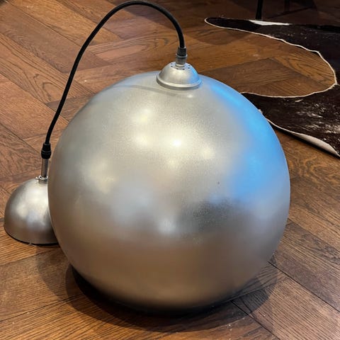 Taklampe i chrome ca 50 cm i diameter.