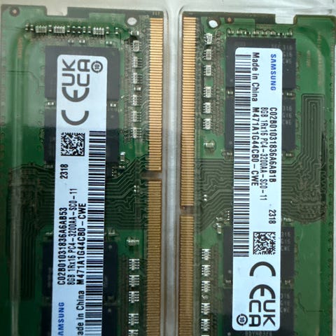 Fungerer som den skal. Testet med Memtest86. Ingen feil. Fastpris. Price is non-negotiable. Vipps only! Kan sendes via Postnord 69kr eller Posten 73kr. *When installing the RAM, install the 16GB module in A2 and 8GB in B2 on your motherboard for optimal performance, and when you enable XMP profile, it will load 3200MT/s XMP*.