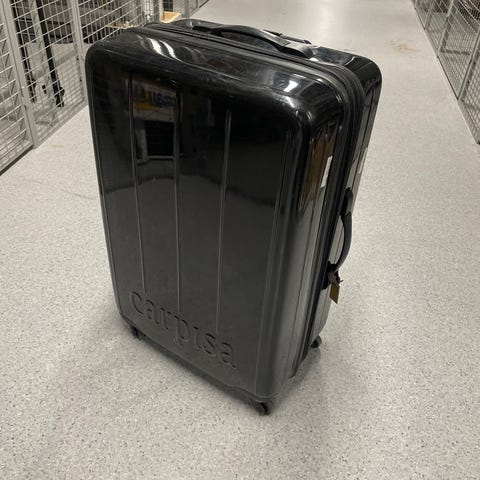 Svart Carlton hardkoffert på omtrent 110 liter.