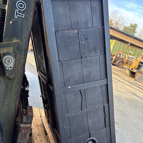 Brukt klebersteinsovn. Den har stått inne til i dag. Den er i ett stykke, og tung. B 32, D 63, H 87,5.