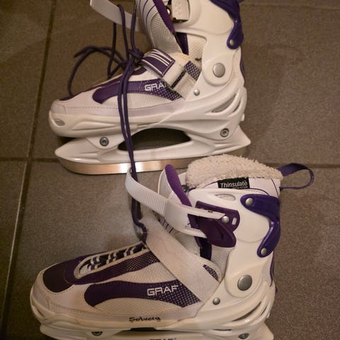 Vi fikk skøyter til jul. De er ikke brukt. Kan hentes på Knausen. Ny pris på Obs er 399,-