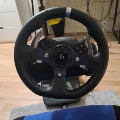Selger et pent brukt Logitech G923 ratt. Følger også med pedaler.