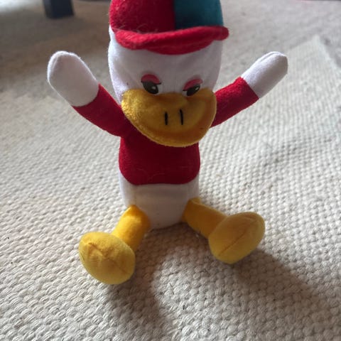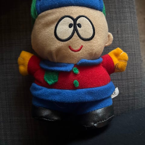 Stor Stewie Griffin-dukke fra Family Guy, ca 65 cm. Kjøpt i USA for 15 år siden. Noen ubetydelige flekker her og der; og øynene har noen riper, men den er i veldig fin stand ellers. Ingen hull. Røykfritt og dyrefritt. Kan hentes i Trondheim sentrum eller sendes.