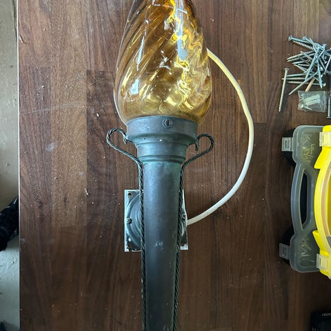 Vegglampe med ledning og bryter.