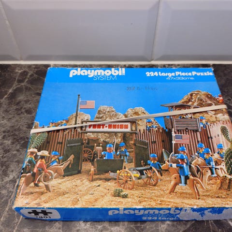 Playmobil puslespill fra 1974. Komplett i eske. Selges 300kr.