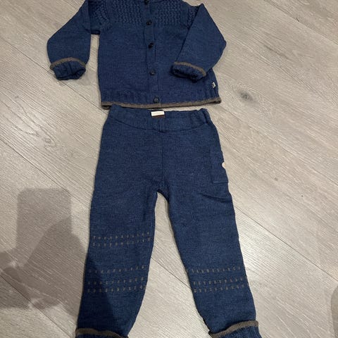 Lillelam ull barneklær sett i grønn/blå farge, størrelse 98, unisex. Laget av ullmateriale som gir varme og komfort. Passer for barn i denne størrelsen og kjønn.