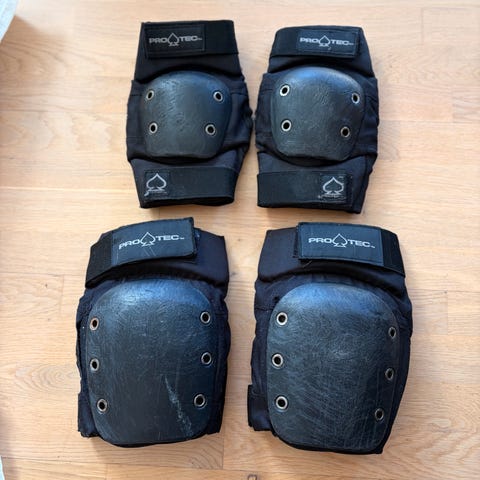 Pro-Tec Street Youth Guard beskyttelsesutstyr i størrelse youth. Inkluderer kne-, albue- og håndleddsbeskyttere. Dette er et sett av høy kvalitet. Farge svart. Laget for ungdom, egnet for aktiviteter som skating og sykling for å beskytte mot skader. Nypris er ca 1000,-