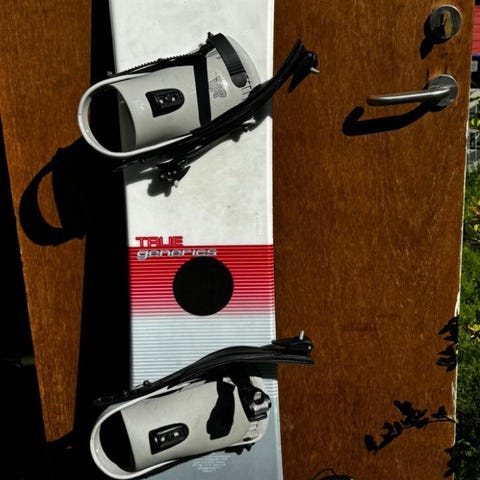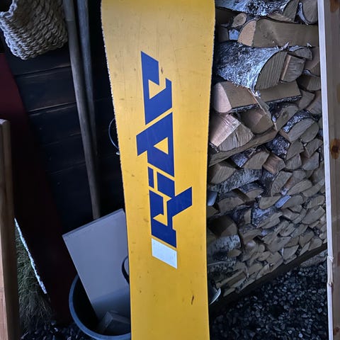 Pent brukte snowboard og alpintski