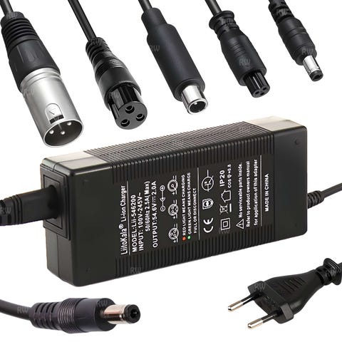 42V - 2A ladeadapter, for effektiv og trygg lading. Leveres komplett med plugg for tilkobling i norsk stikkontakt.