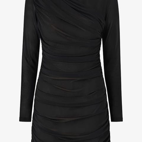 Litt vanskelig å fått tatt skikkelige bilder når det er så mørkt ute, så fargen er misvisende. Den er helt svart / sort. Denne kjolen har skulderputer og er designet slik at den kan brukes begge veier. Synst den er nydelig på, legger ved et bilde fra nettet av den på (bare i hvit).
