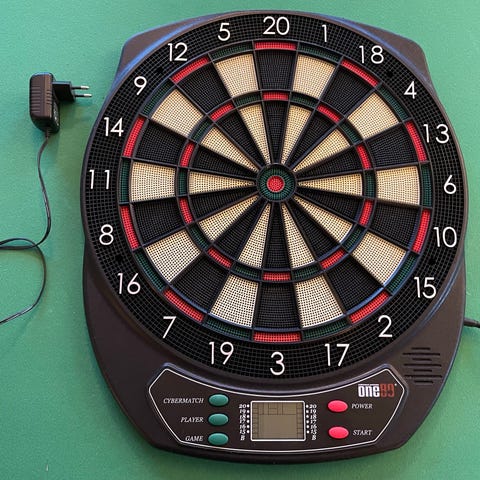 Harrows elektronisk dartskive med innebygd digital poengtavle. Leveres med flere sett piler i forskjellige farger. Skiven har standard størrelse og er egnet for innendørs bruk.