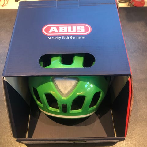 Abus Youn-I sykkelhjelm i blå farge. Str M, 52-57 cm (vil tro det er ca 4-8 år)