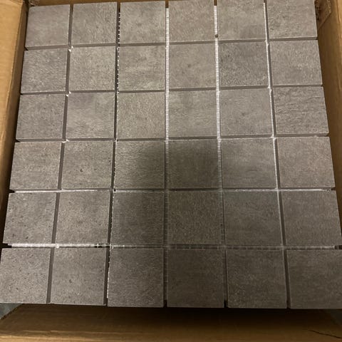 Cifre Mosaic, mosaikkfliser 5x5 cm. Flisene har en glatt overflate, grå i fargen.