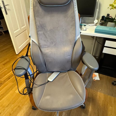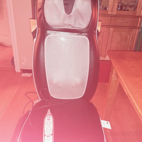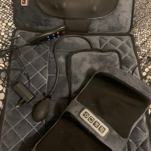 Selger et pent brukt OBH Nordica 6092 shiatsu massasjesete. Legges i vanlig stol og gir god massasje i rygg og skuldre med roterende massasjehoder. Varmefunksjon kan slås av/på.
