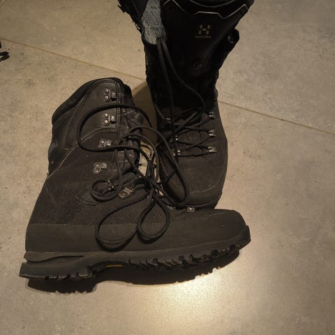 Skoene ble kjøpt inn til en lenger fjelltur som det aldri ble noe av. Skoen er ubrukt, men har stått inne og tørt siden ca. 2020.