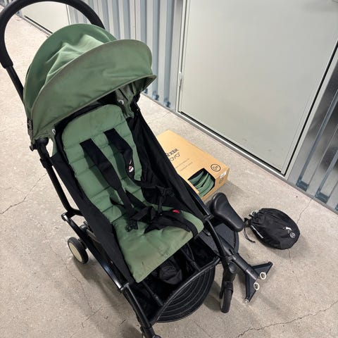 BABYZEN YOYO barnevogn med rød farge. Barnevognen har et kompakt og lett design, egnet for enkel transport og oppbevaring. Den har justerbar sele og beskyttende kalesje. Understellet er svart med hjul som gir god manøvrerbarhet.