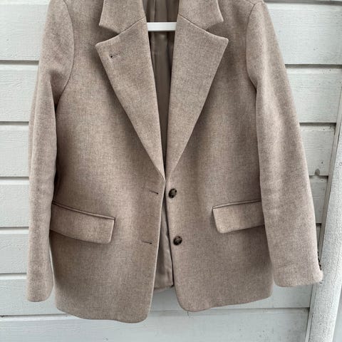 blazer i størrelse L for kvinner. Jakken er grønn.