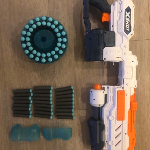 Selger en nesten helt ny Nerf X-Shot leketøysgevær med stor skudd kapasitet.