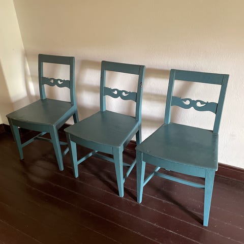 Gamle/antikke stoler. Pent brukt.To forskjellige design i ryggen. To av hver type.