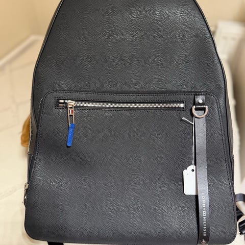 Tommy Hilfiger ryggsekk for dame laget i lær og denim. Sekken har justerbare skulderstropper og flere rom med glidelås. Kombinasjon av mørkeblå og blå farge. Sekken er veldig stilig!