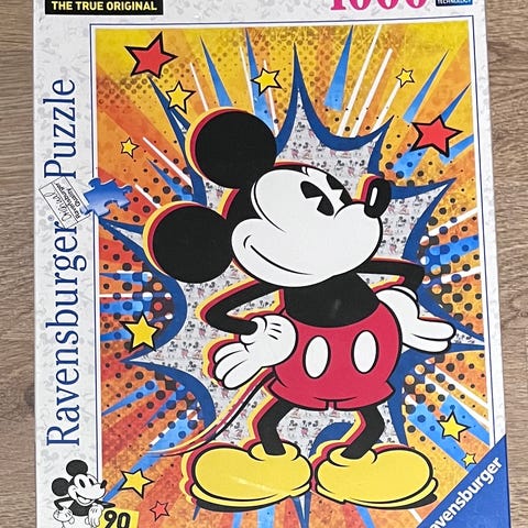 Ravensburger puslespill med 1000 brikker. Motivet viser en fargerik og detaljert scene med ulike figurer og objekter.