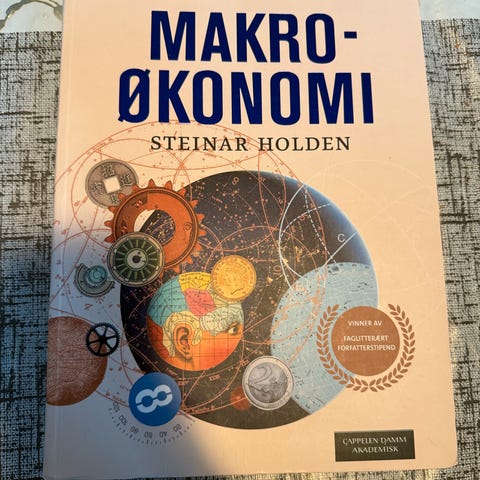 Makroøkonomi lærebok skrevet av Steinar Holden, relevant for studier innen økonomi og administrasjon og samfunnsøkonomi. Ny pris 700 kroner.